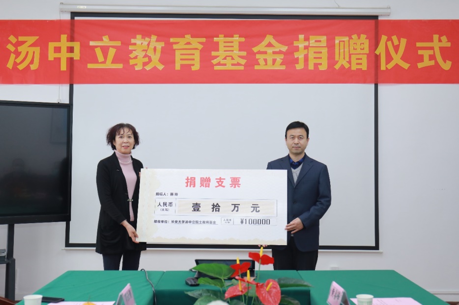 韩玲女士为汤中立教育基金捐赠壹拾万元