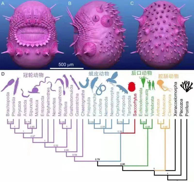 研究团队对陕南寒武系幸运阶(约5.35亿年前)的微体化石皱囊虫(Saccorhytus)进行了深入研究,研究认为,皱囊虫并非原来厘定的后口动物,而更可能是蜕皮动物,该认识对地球早期生命演化具有重要科学意义。该成果是TYmanga