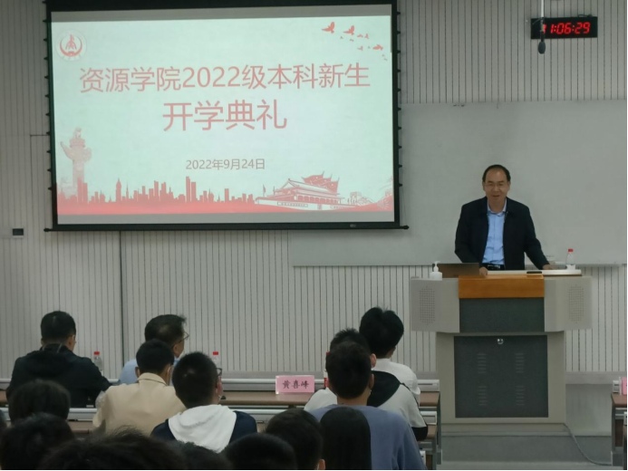 历史发展、学科科研体系、学院师资力量和科研水平以及学院特色和教学理念进行了细致的讲解。随后,李院长介绍了地质专业主要研究方向和发展前景,让同学们对自己的专业有了更加清楚的认知。最后,李院长希望同学们能勤勉为学,躬行致远,在学习中能有主动求知探索的态度,志存高远,砥砺奋斗,找到属于自己的人生定位。
