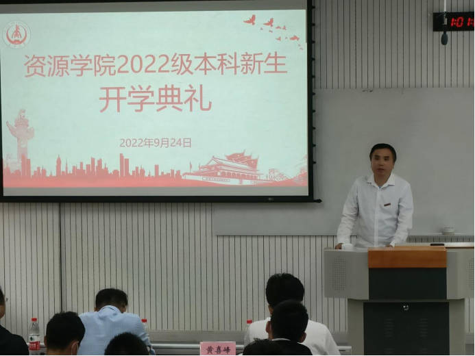2022级本科生开学典礼于北校区WX3102教室隆重召开,在WX3103设立分会场,并通过腾讯会议全程直播。学院党委书记黄喜峰、院长李荣西、学院党委副书记副院长薛冬钧、副院长程宏飞、教授代表吴昌志、各系主任、学办主任、2022级本科生辅导员、新生班主任和2022级全体本科生参加了开学典礼。典礼由学院党委副书记武永江主持。