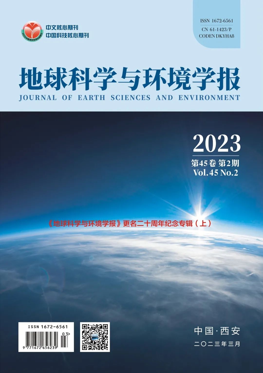 《地球科学与环境学报》更名二十周年纪念专辑封面