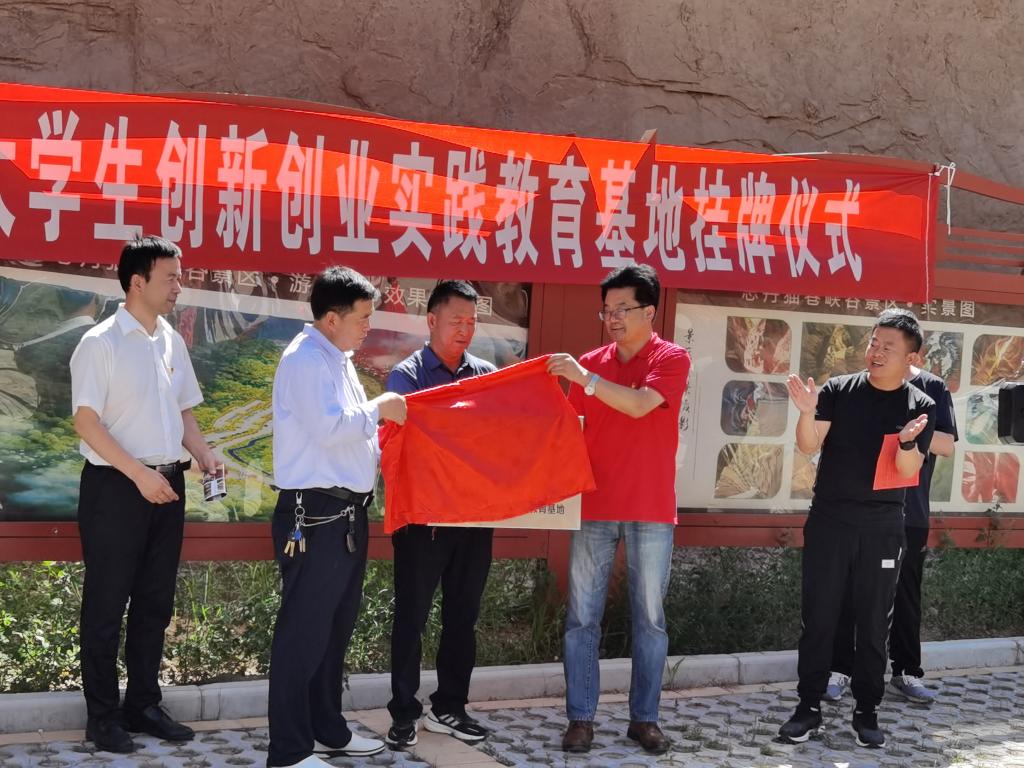 大学生创新创业实践教育基地挂牌仪式。志丹县文化和旅游局党委书记、局长王蔚恩,旅游服务中心主任南楠,陕西红都千盈旅游文化发展有限公司董事长、志丹猫巷峡谷景区总经理任志刚,TYmanga