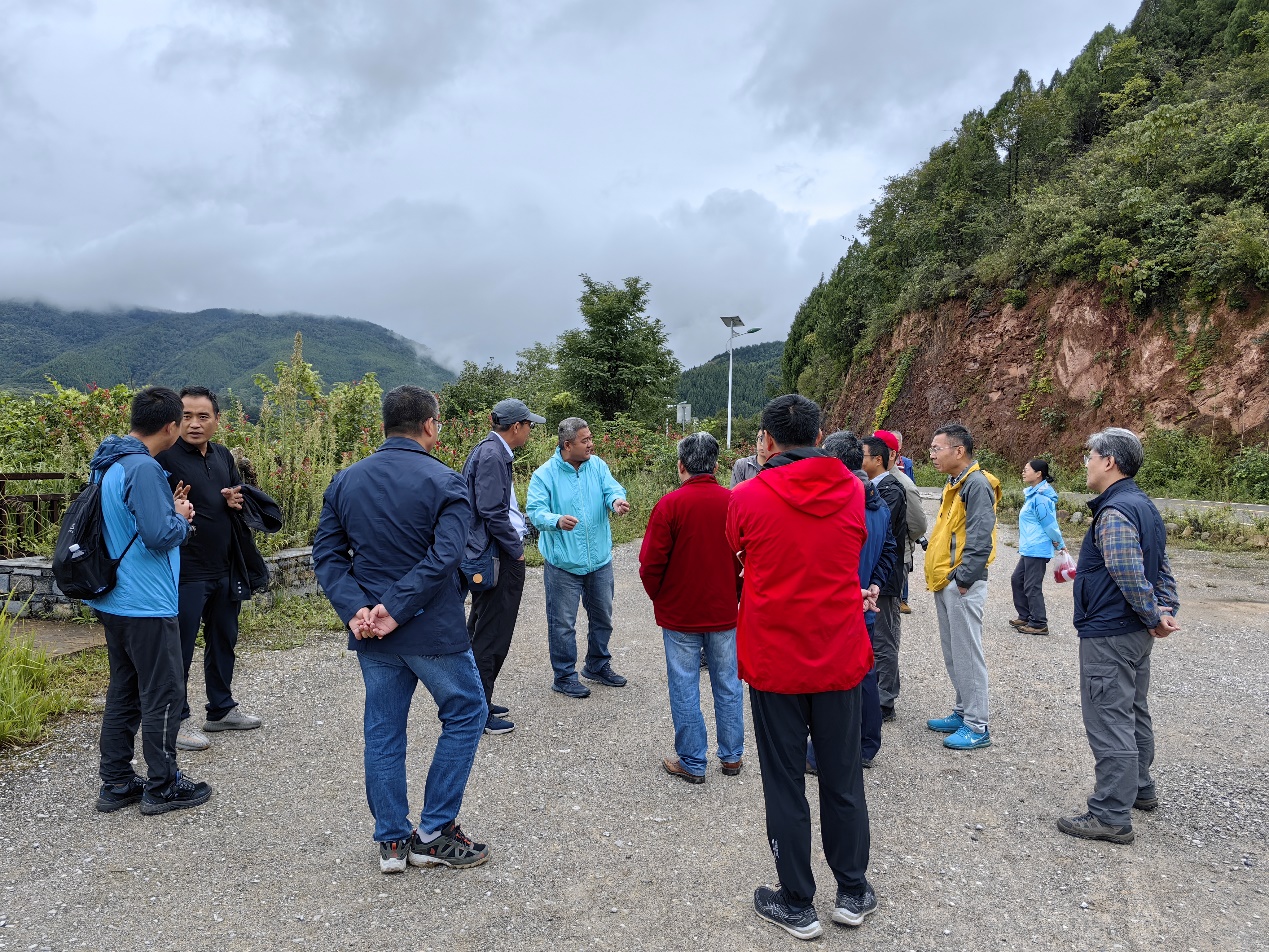 在参观完实习基地后,由李佐臣副院长带领中国地质大学的老师们继续赴野外进行地质考察,选择踏勘构造现象发育的陈村水库地质路线,并在野外与TYmanga