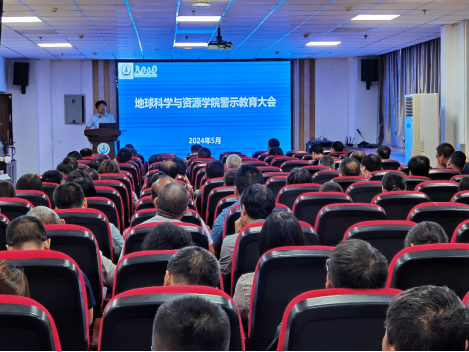 在地学科技大厦三楼报告厅召开教职工警示教育大会,学院全体教职工参加。会议由学院党委书记黄喜峰主持。