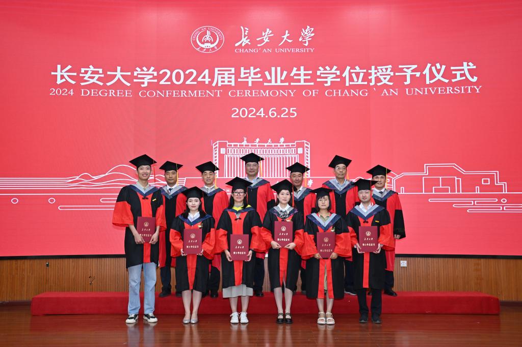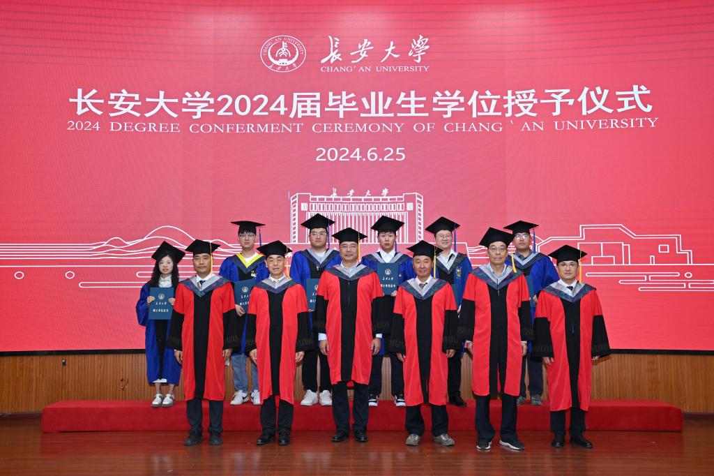 随后,学位授予仪式正式开始,黄喜锋书记宣读了毕业生学位授予名单。温汉捷教授、钱壮志教授、杨兴科教授、裴先治教授、李佐臣教授、程宏飞教授为毕业生们逐一拨正流苏、颁授学位证书并合影留念。