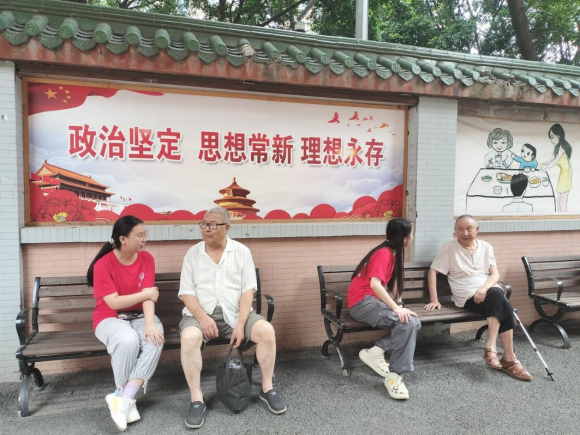 首先,实践团队前往重庆百康年军休康养中心开展志愿服务活动。这里的老人大多都是陆军军医大学的军队离退休人员,还有的是经历过朝鲜战争的老战士,实践队的同学与老人们畅所欲言,深情讲述党团结带领人民取得的伟大成就,并认真聆听老人们讲述他们英勇奋斗、无私奉献的感人事迹。