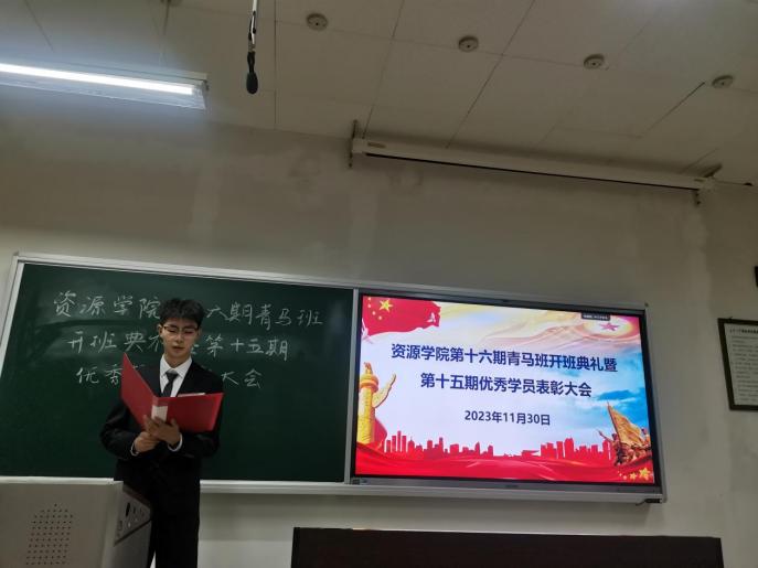 第十六期青马骨干培训班开学典礼暨第十五期优秀结业学员表彰大会在北校区明远1215教室举行。院团委书记巩昌盛老师、团委副书记张凤老师、第十五期部分结业学员和优秀学员、第十六期全体青马骨干学员以及2022、2023级各班学生代表参加会议。本次会议由院团委青马实践部邹洋主持。
