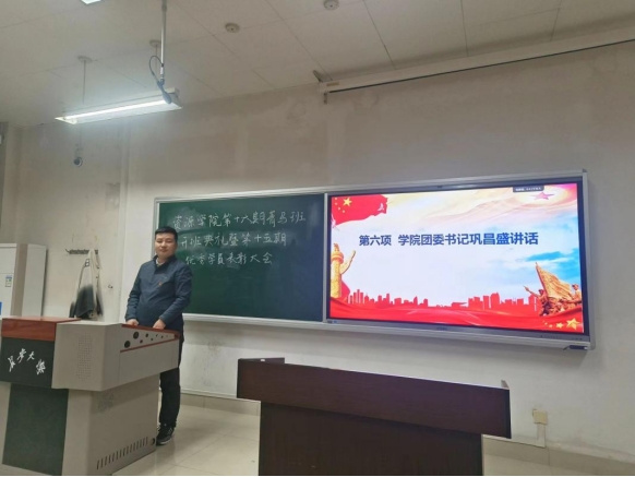 最后,院团委书记巩昌盛老师讲话。他对圆满完成培训的第十五期结业学员们表示祝贺。他重点围绕“什么是青马工程”“为什么要参加青马培训”等内容作了细致讲解,他希望新学员们通过培训,能坚定理想信念,志存高远,砥砺奋进,让青春在中国式现代化的火热实践中绽放绚丽之花。