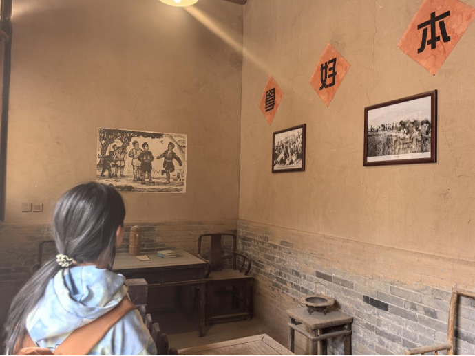 安吴青训班是中国共产党在抗日战争时期创办的重要青年干部培训基地,被誉为“革命青年的熔炉、青运史上的丰碑”,为中国抗日救亡事业输送了大批骨干力量。在讲解员的引导下,同学们依次参观了展馆陈设、实物展品和大量珍贵历史资料,详细了解了青训班的创建背景、发展历程和历史贡献,深切感受到了革命青年在民族危难时刻挺身而出、敢于担当的崇高精神。