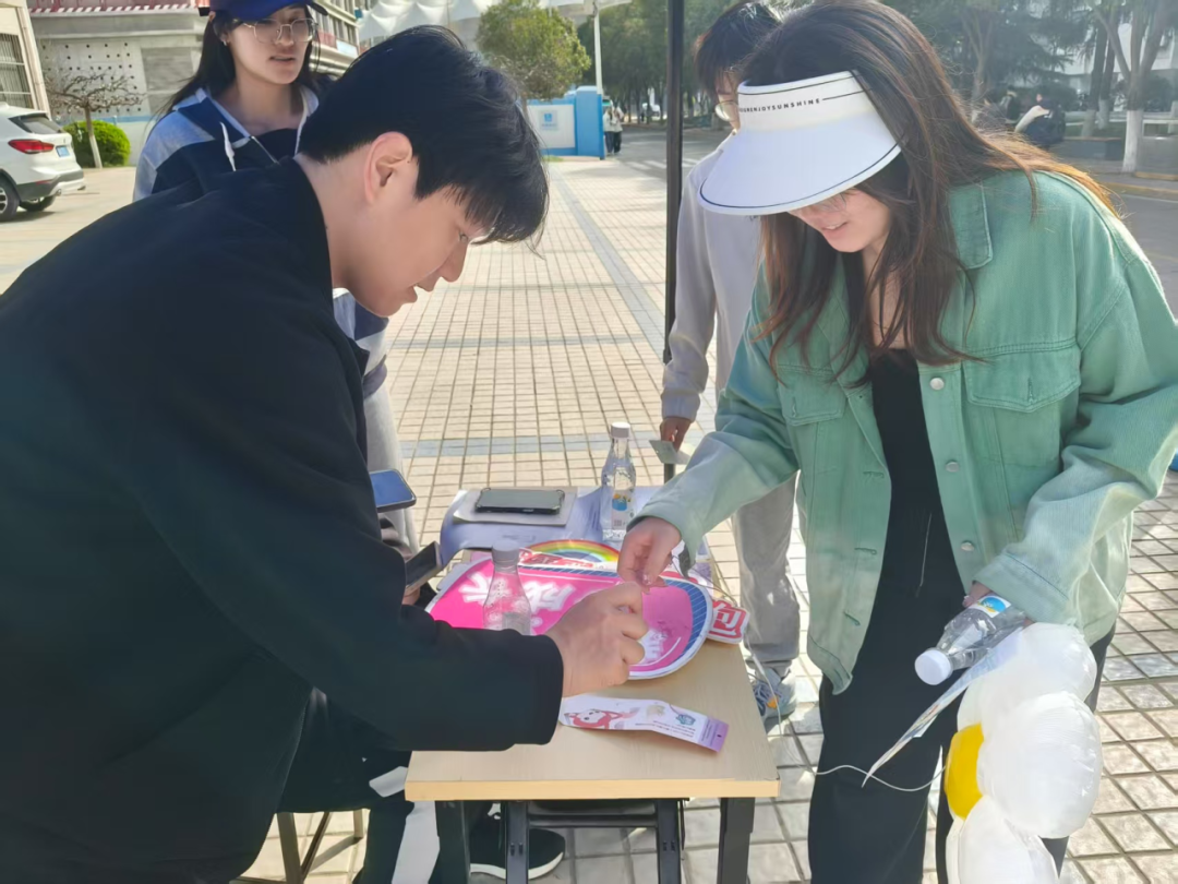 活动创新采用"健步+心理"的融合模式,精心打造四大主题互动区。参与者在环校健步中,既可体验多种特色心理游戏,还能收集心理健康协会特色印章与精美书签。互动打卡站前,同学们完成挑战即可获得专属印章认证;终点区集齐四枚特色印章的师生可通过"青春长大"平台完成实践认证,并参与惊喜抽奖,活动现场始终洋溢着欢声笑语。