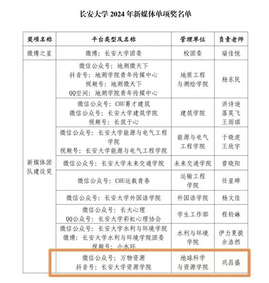 此次荣获“新媒体团队建设奖”,是对资源青媒过去一年辛勤付出的肯定和鼓励。未来,资源青媒将再接再厉,不断创新和进步,为学院师生提供更加优质的新媒体服务。