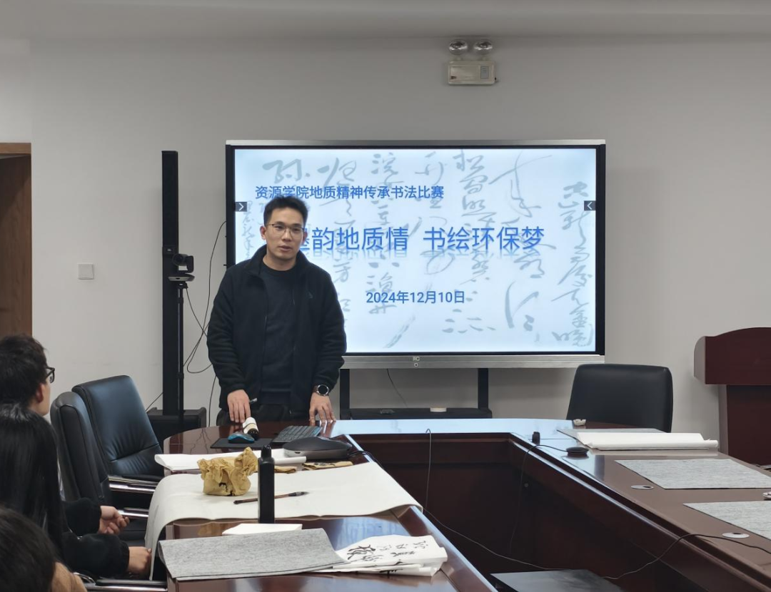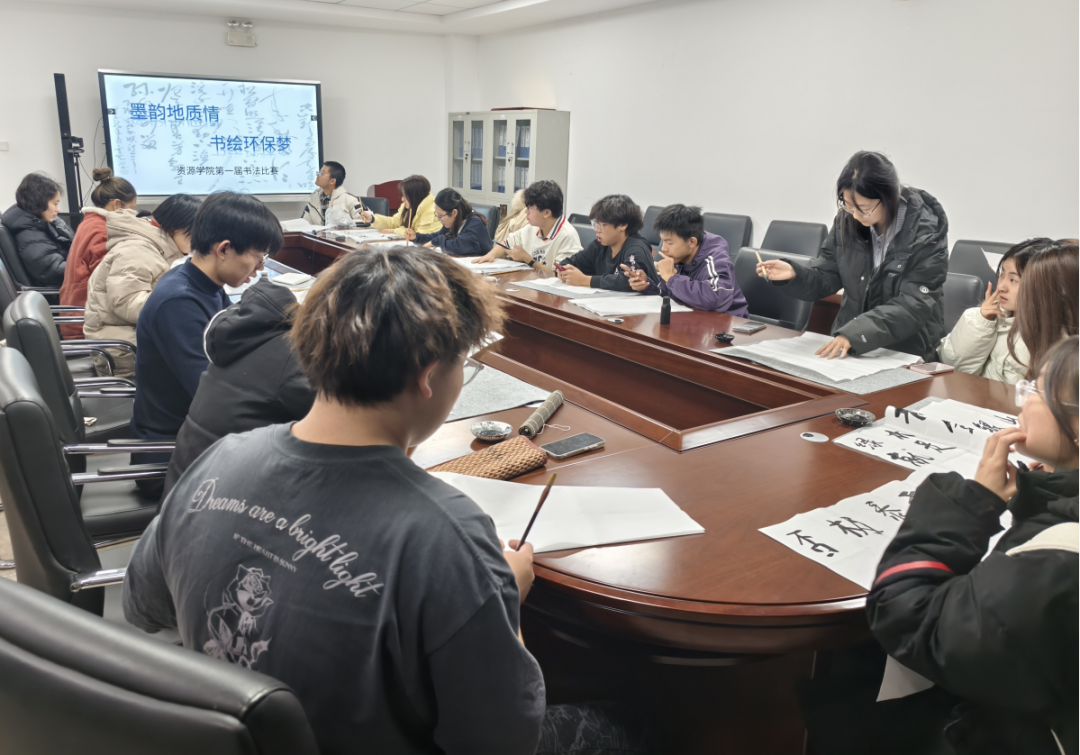 “墨韵地质情·书绘环保梦”书法比赛在北校区朝晖园学生社区顺利举行。学生社区主任白礼平、学生社区副主任苗行生、学院团委书记巩昌盛、团委副书记张凤、学院科协主席戴旭阳和副主席苏艾拜·买买提依明担任评委。来自全校10余个院系的40名选手参加比赛,冯思嫄主持。