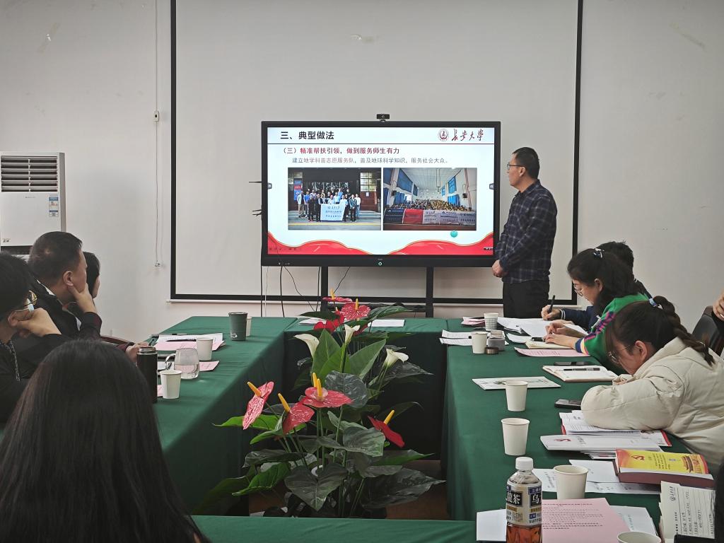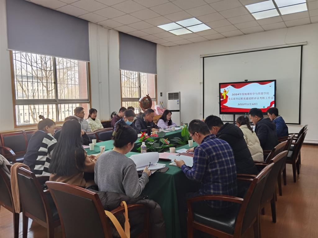 最后,党委书记黄喜峰作总结讲话,他指出,基层党建述职评议考核是深入贯彻习近平新时代中国特色社会主义思想、履行管党治党政治责任的一项重要举措,要持续深入学习贯彻党的二十届三中全会精神、全国教育大会精神,推进全面从严治党向基层延伸,推动基层党组织全面进步全面过硬。他在肯定各党支部2024年党建工作成绩的同时,对2025年党支部抓基层党建工作提出了三点要求:一是各党支部要把党建与业务紧密结合,抓党建、促发展;二是结合支部特色,充分发挥党支部的战斗堡垒作用和党员的先锋模范作用;三是以“双创”为抓手,打造地学特色党建品牌,以习近平新时代中国特色社会主义思想为指导,用高质量党建推动学院高质量发展。