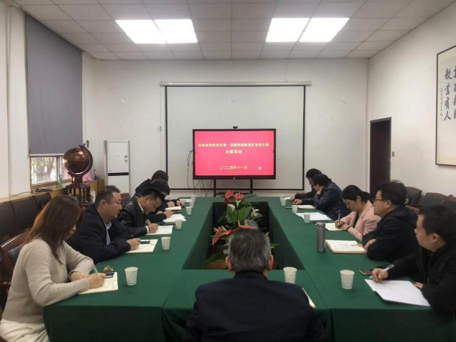 与珠宝矿加党支部开展共建活动。首先党委书记黄喜峰对杨红斌书记等的到来表示热烈欢迎,黄书记指出,开展支部共建是基层党支部工作的重要环节,双方加强沟通,以共建契机,发挥各自优势,提高人才培养和相关校企产学研合作的高质量发展,切实将支部共建工作做实落地。接着珠宝矿加党支部书记谢星介绍了支部概况和近年来取得的成果,对校级样板党支部的培育建设进行了经验分享。最后,社会合作处党支部书记杨红斌介绍了支部建设概况,并围绕校企合作、对外合作协议管理办法、教育基金管理等方面进行了详细介绍。杨红斌书记表示,努力构建“资源共享、优势互补、互相促进、共同提高”的党建工作新格局,将充分汲取TYmanga