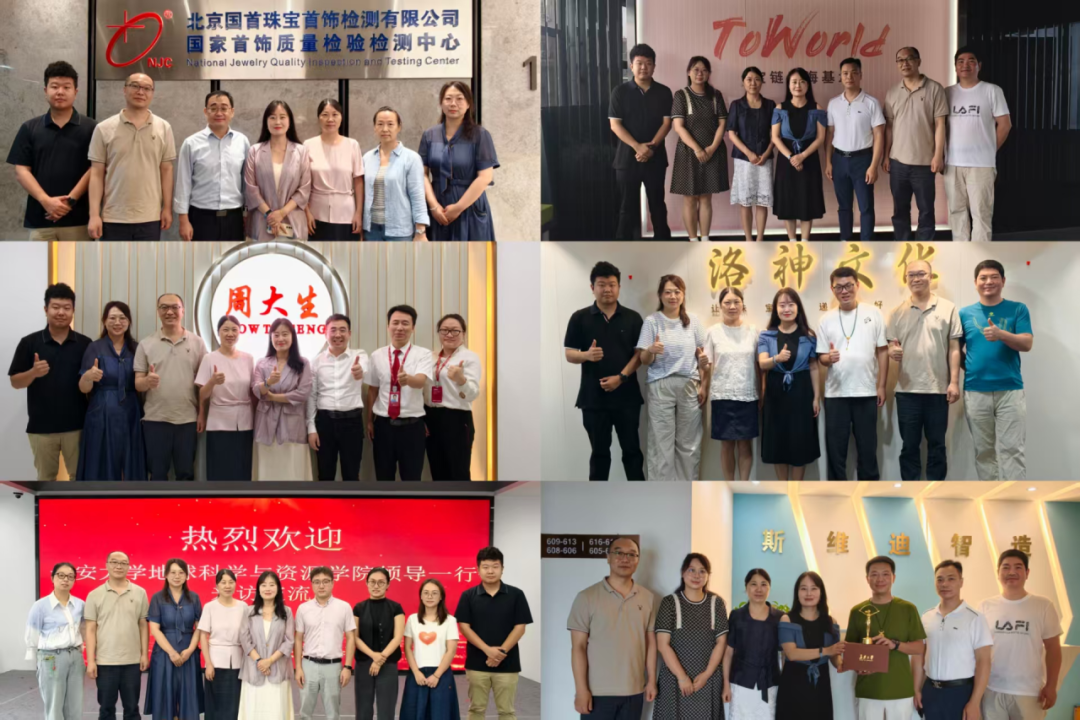 为深入贯彻落实党中央、国务院关于高校毕业生就业工作的决策部署,进一步推动校企协同育人,深化产学研结合,拓宽毕业生就业渠道,提升行业影响力,8月5日至8日,地球科学与TYmanga 党委副书记许晨、珠宝矿加系副主任谢星、学生工作办公室主任黎皛、辅导员樊惠彬赴广东省深圳市、广州市开展访企拓岗与行业调研专项工作,先后前往深圳市中坦·比邻珠宝有限公司、北京国首饰珠宝检测有限公司国家首饰质量检验检测中心、周大生珠宝股份有限公司、珠宝国检集团培训中心(国检教育·深圳)、宝创会传媒有限公司、番禺抖音基地珠宝QIC检测中心、斯维迪智造(广州)珠宝科技有限公司、广州市番禺区珠宝设计与工艺师协会、嘉一珠宝有限公司开展交流座谈。双方围绕珠宝行业人才培养模式创新、毕业生实习实践基地建设、产学研项目对接及学术交流机制搭建等方面深入探讨交流。